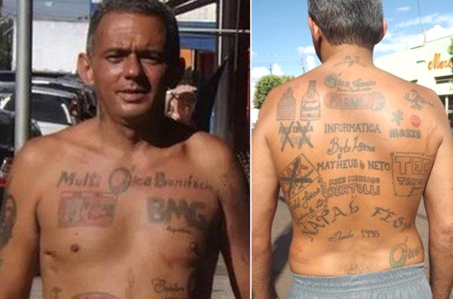 Většina lidí pečlivě zvažuje, co si nechá vytetovat na svém těle. Brazilský muž si s tím však příliš velkou hlavu nedělal a pronajal své tělo jako reklamní plochu
