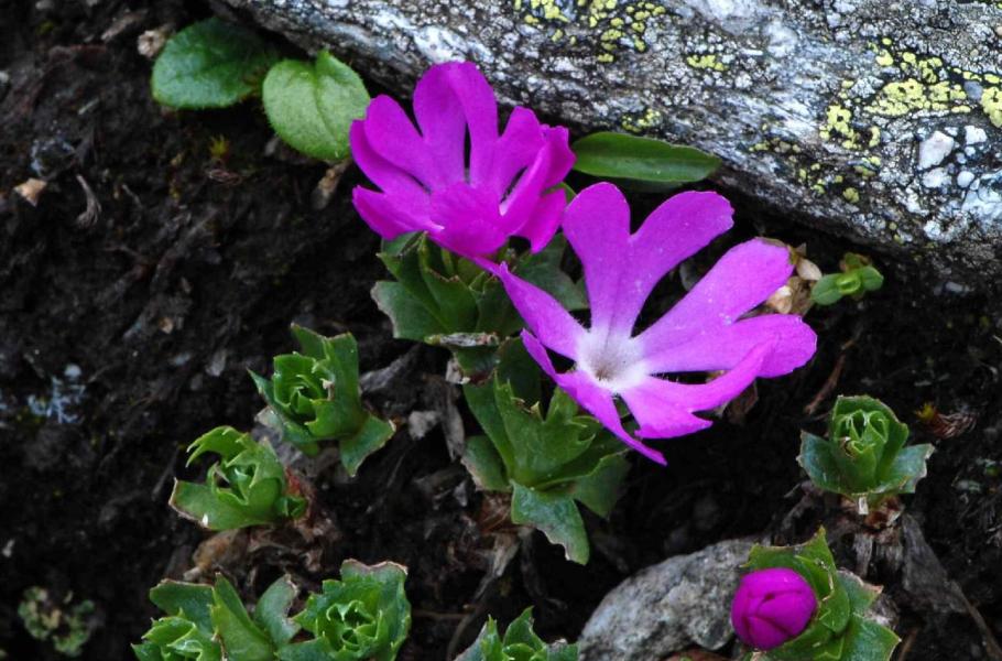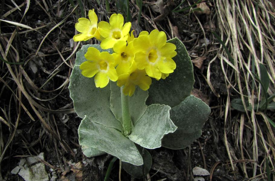 Nejhezčí prvosenky najdeme na horách. Například prvosenku lysou, která má řadu českých synonym, ale naštěstí jen jeden latinský název Primula auricula (viz obrázek). Na jaře bývají jejími květy posety vápencové skály na Slovensku a v Alpách. Patří mezi takzvané dealpiny, což jsou rostliny, které často sestupují z hor i do nižších poloh.