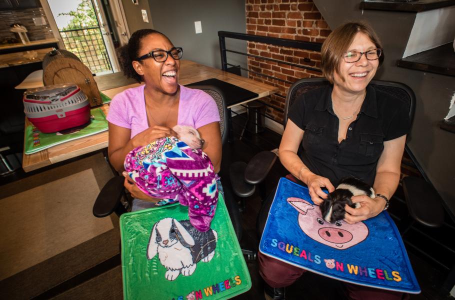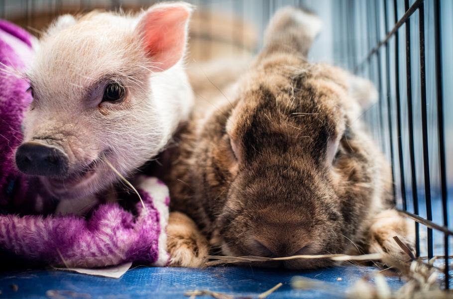 Do akce se naopak zapojila Delilah a Henrietta, mnohem lépe vychovaná miniaturní asijská kuřata. Zakrslé prasátko Thumbelina se dostavilo zabalené v dece a skoro celou dvouhodinovou návštěvu prospalo: Neprobudilo ho ani kníkání morčat, ani kolotoč rukou, které si jej předávaly jako chlupaté mimino. „Každý by se choval mnohem líp, kdyby se mohl aspoň jednou týdně pomazlit s prasátkem,“ myslí si výkonná ředitelka Nest DC Grace Langhamová.