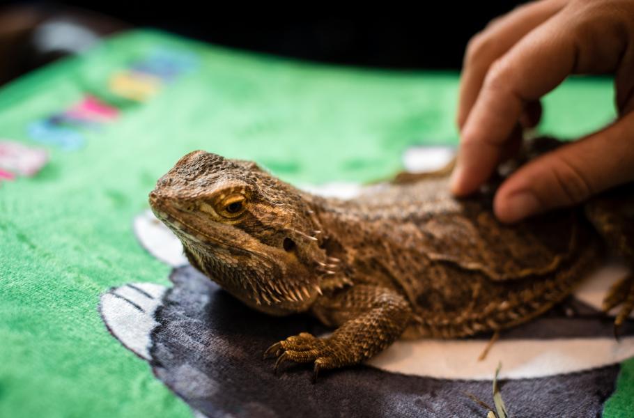 Chris Delaney si od své stresující práce ve washingtonské firmě Discovery Communications obvykle odfrkne při víkendových vyjížďkách v autě nebo když se probírá horami vinylových desek v antikvariátech. Komunikační technik však právě zkouší jiný způsob relaxace, než na jaký je zvyklý, a to přímo v kanceláři – hladí agamu australskou. „Je to příjemně klidný chlapík,“ notuje si Delaney, zatímco mu ostnatý ještěr sedí na klíně. „Dotek teplou rukou ho umí dobře naladit.“