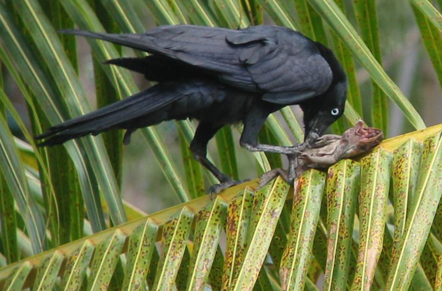Jak dokládají očitá svědectví, vrány se samy naučily, jak ropuchy bezpečně ulovit a sežrat z nich to, co není jedovaté. Vrány stráví klidně i desítky minut obíráním ulovených ropuch a pozřou jejich stehna, jazyk a vnitřnosti. Udělají to přitom tak, že se vyhnou kontaktu s jedovatými částmi. Některé australské vrány si dokonce ropuchu pečlivě omyjí, než se do ní pustí.