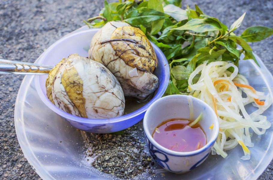 Není vejce jako vejce. Ta vietnamská mohou skrývat překvapení v podobě kachního embrya, a i když se (nejen) pro evropské cestovatele jedná o nevšední specialitu, pouliční stánky ji mají v nabídce běžně. Původem filipínský pokrm, balut, se rozšířil do celé jihovýchodní Asie a chuťově připomíná míchaná vajíčka, i když pravda, díky měkkým kostem lehce křupavá, nejčastěji se totiž servírují zárodky 14 - 21 dní staré.