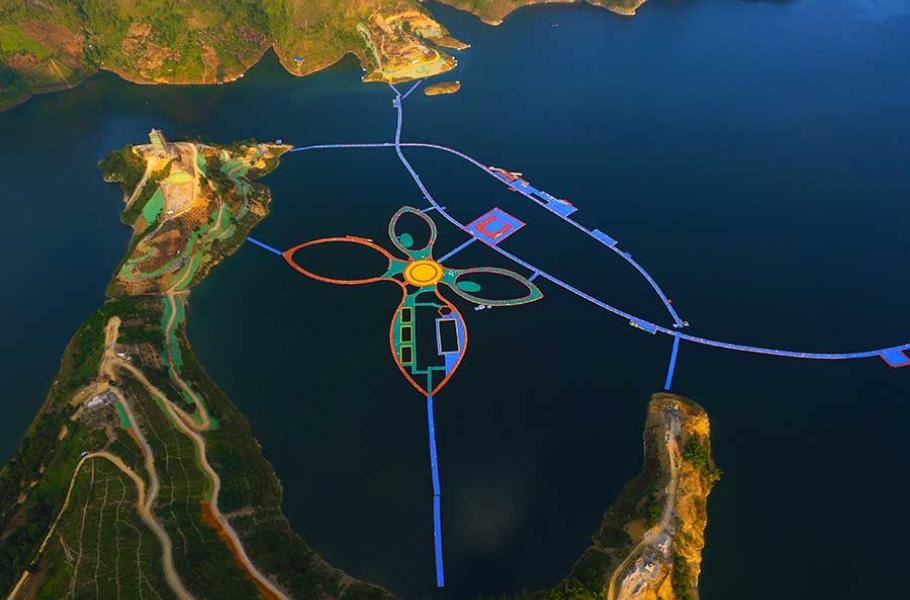 Zdejší lávka ve tvaru motýla měří na délku 5,13 kilometru a pokrývá úctyhodnou plochu 54 000 m². Kromě nezvyklé procházky po hladině řeky Chung-šuej nabízí plovoucí park spoustu vodních atrakcí, včetně obřího bazénu, tropické zahrady a 40 metrů vysoké vyhlídkové věže.