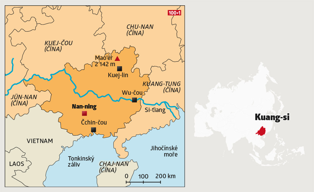 Region Kuang-si se rozkládá v rozsáhlé krasové oblasti, a tamní krajina je tudíž extrémně členitá. Nabízí přitom nejen nádherné výhledy na nesčetné vrcholky, ale také rekordní jeskyně, fotogenická terasovitá políčka či tepající velkoměsta.