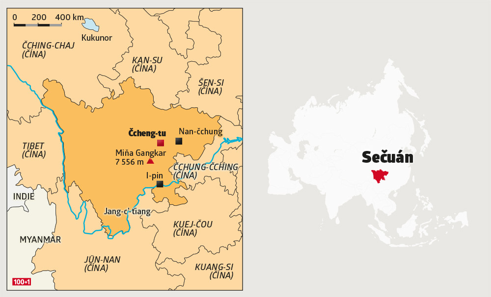 - charakter území: Sečuánská pánev a na západě vysoké hory
