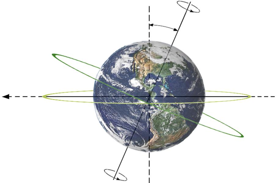 Naproti tomu ekliptika odpovídá rovině oběhu Země kolem Slunce. Do ní se nám pak na obloze promítá pozice Slunce, takže ekliptika představuje myšlenou čáru, po níž se na nebi pohybuje střed slunečního kotouče. Kružnice nebeského rovníku a ekliptiky se přitom protínají ve dvou bodech. Označujeme je jako vzestupný a sestupný uzel a sluneční kotouč se v nich nachází ve dnech rovnodenností: Průchod vzestupným uzlem předznamenává nástup teplejší poloviny roku, průchod sestupným uzlem naopak té chladnější.