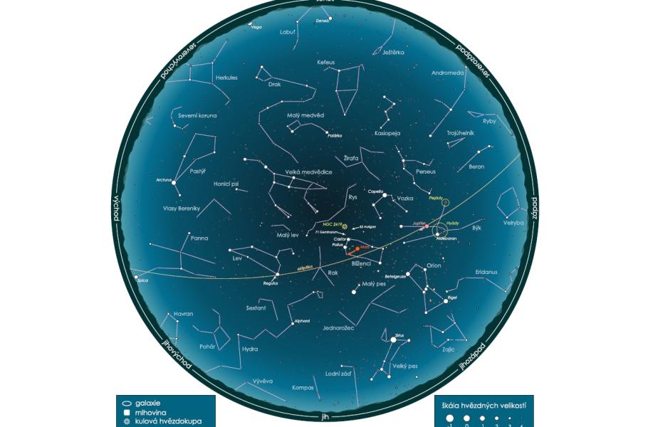 - Jupiter – viditelný v první polovině noci