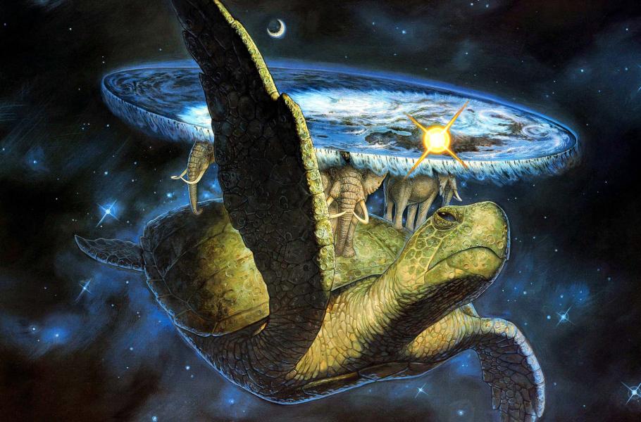 Plochá planeta se stala základem mnoha neexistujících světů – takto si ji představoval Terry Pratchett, autor fantasy románů o Zeměploše.