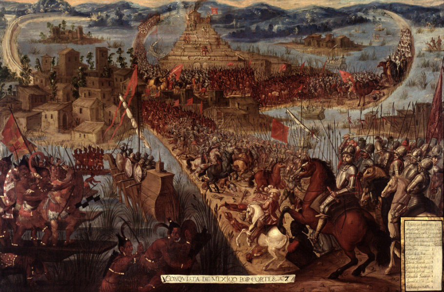 Dobytí Tenochtitlánu Hernánem Cortésem v roce 1521, jehož se účastnil i rodák z Osoblahy Johann Berger de Hotzenplotz. (ilustrace: Wikimedia Commons, PDM 1.0)