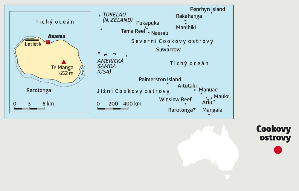 Pokud bychom všechny Cookovy ostrovy umístili vedle sebe, zaujímaly by sotva plochu Brna. Nacházejí se však na takovém území, že jejich tzv. výlučná ekonomická zóna zahrnuje dva miliony kilometrů čtverečních, což odpovídá Grónsku. Nejsevernější a nejjižnější kus pevniny dělí téměř 1 500 kilometrů neboli šest hodin letu. A zhruba dvojnásobná vzdálenost se rozkládá mezi jižní skupinou ostrovů a Novým Zélandem, k němuž se souostroví váže tzv. volným spojením.