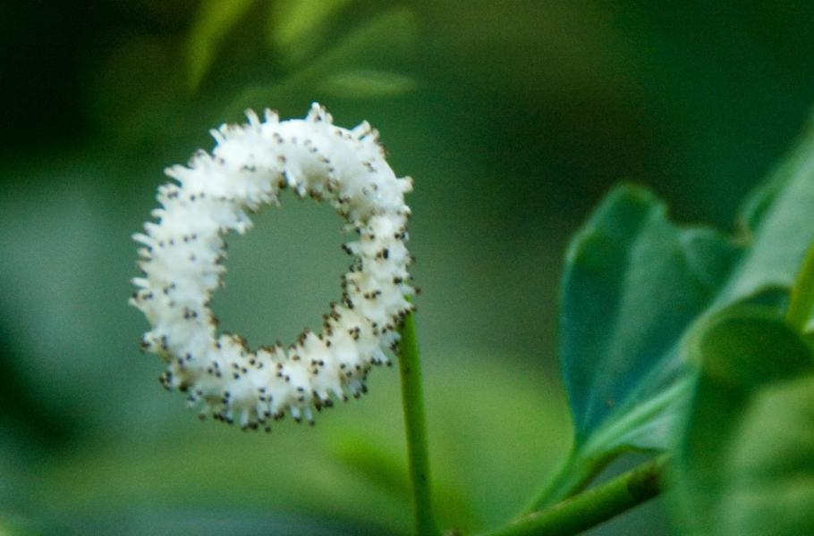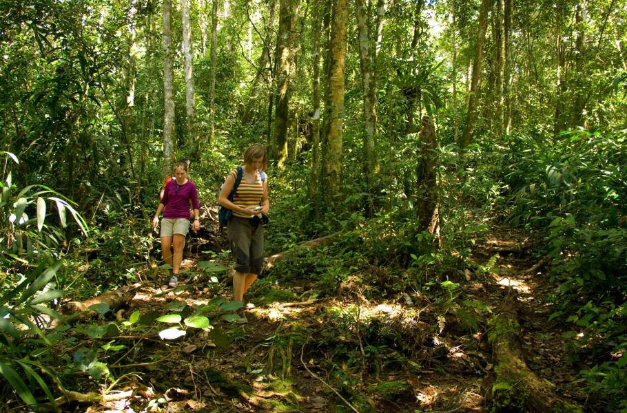 Se stoupající nadmořskou výškou přibývá pokroucených stromů obrostlých mechy a lišejníky, což je neklamný znak mlžného pralesa. Tento ekosystém se zde vytváří ve vyšších nadmořských výškách, okolo vrcholků vydatně zvlhčovaných stálou mlhou, kondenzujícími kapkami i častými dešti. V takovém prostředí se daří nejen mechům, ale také orchidejím či masožravým láčkovkám a v korunách stromů rostoucím epifytům.