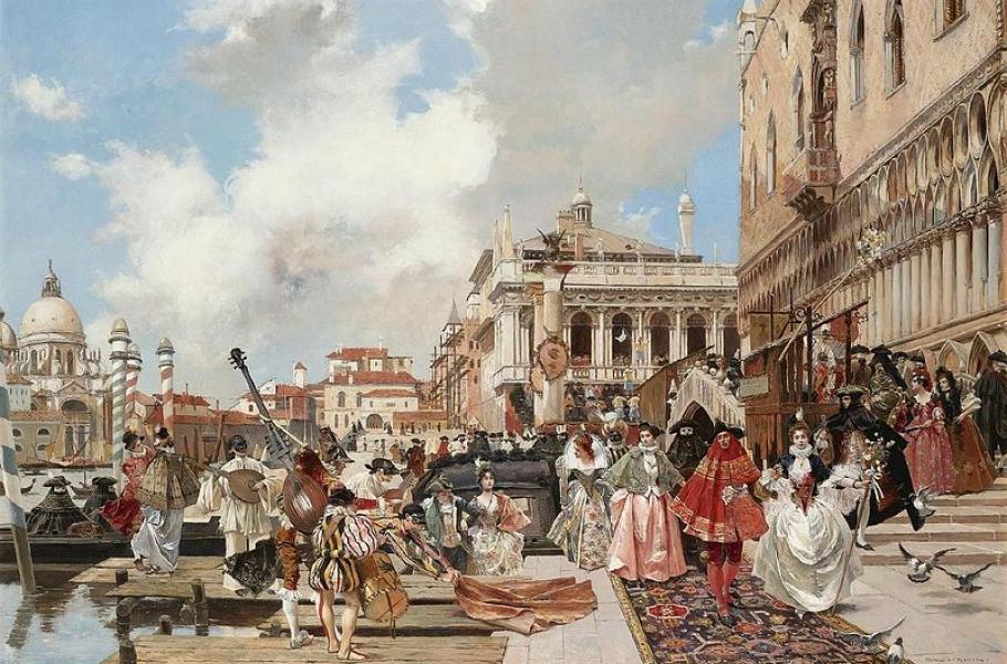 Benátský karneval předcházel postnímu období před velikonočními svátky. A snad právě odtud pochází i slovo karneval – z latinského „carne vale“ neboli sbohem maso