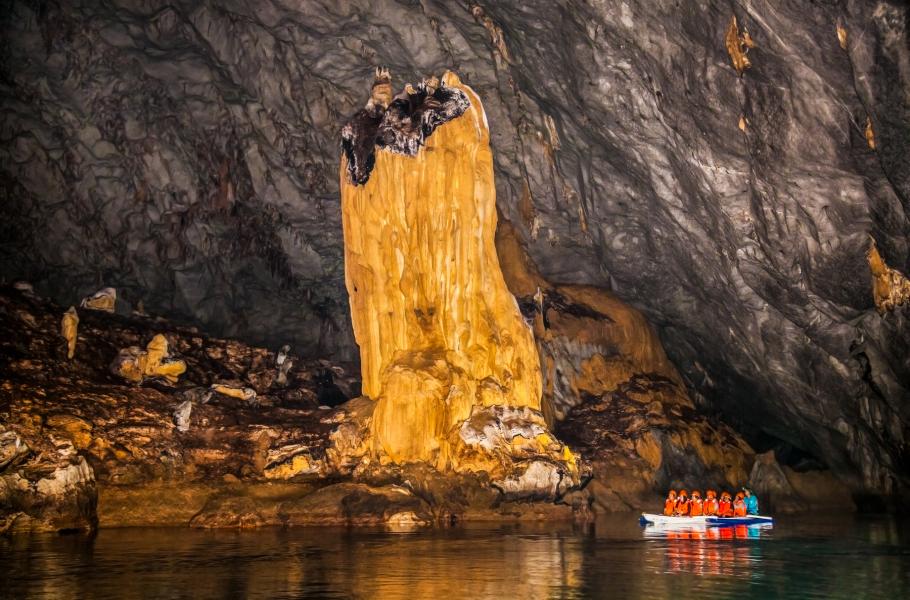 Puerto-Princesa Subterranean River – tak zní celý název národního parku v krasové oblasti filipínského ostrova Palawan. Nedotčenou vápencovou jeskyní St. Paul protéká v délce 8 km řeka Cabayugan a přímo na pláži ústí do Jihočínského moře. Její dolní poloslaný tok ovlivňuje příliv, přičemž se jedná o celosvětově jedinečný úkaz. Řeka je splavná až v délce 4 km a z loděk lze obdivovat nádherné oranžovožluté stalaktity i stalagmity, jež se odrážejí v její průzračné azurové hladině. Jeskyně ukrývá také gigantické komory, které nemají jinde na planetě konkurenci.