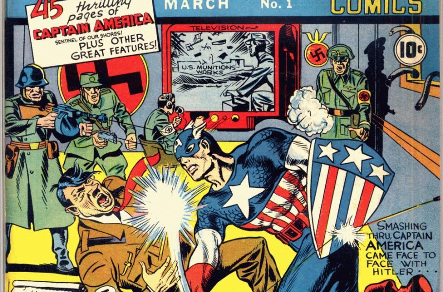 Válka v Evropě zuřila naplno a mladý scenárista Joseph Simon spolu s nadaným kreslířem Jackem Kirbym byli znechuceni německou agresí. Pro Marvel tak vytvořili hrdinu jménem Captain America (tedy „kapitán Amerika“), zosobnění všech národních ctností a patriotismu, který se měl nacismu postavit. Neohrožený kapitán vstoupil na komiksový trh rázně – hned na obálce prvního čísla dal pořádný výprask přímo Adolfu Hitlerovi. Premiérového sešitu se prodalo na milion kusů a zrodila se jedna z velkých komiksových legend. Ve stejném roce se na scéně objevují i Black Widow nebo Green Lantern.