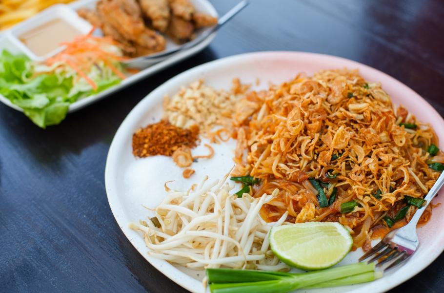 Potravinová krize během druhé světové války dala vzniknout i tradičnímu thajskému jídlu pad thai. Japonská invaze do států východní Asie způsobila nedostatek téměř všeho, včetně rýže. Nudle tvořící základ zmíněného pokrmu tak sice rýžovou mouku obsahují, je ovšem nastavená tapiokovým škrobem a vodou. Po smíchání nudlí s domácí zeleninou vzniklo výživné, rychlé a cenově dostupné jídlo, které zachraňovalo životy. Jeho vaření proto podporovala i thajská vláda. (foto: Shutterstock)
