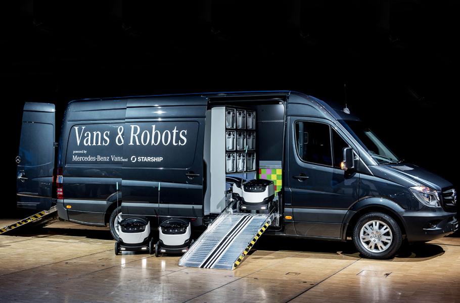 A zázemí by autonomním robotům mohly poskytnout speciální dodávky, které budou fungovat jako mateřské lodě robotů. Na vývoji takových mateřských dodávek teď spolupracují estonský startup s příznačným názvem Starship Technologies a tradiční německý výrobce automobilů Mercedes-Benz.