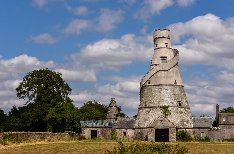 „Nádherná stodola“ stojí v irském Leixlipu od roku 1743: Projekt financovala Katherine Conollyová a jde o jeden z následků velkého hladomoru, který zemi sužoval v letech 1740–1741. Filantropka chtěla zaměstnat dělníky v nouzi, a tak je najala na vybudování prapodivné stavby ve tvaru vývrtky. Dodnes není zcela zřejmé, zda měla stodola také nějaké praktické využití. Podle některých teorií její špička sloužila jako holubník, jiné zas hovoří o ideálním prostoru pro sportovní střelbu. (foto: Shutterstock)