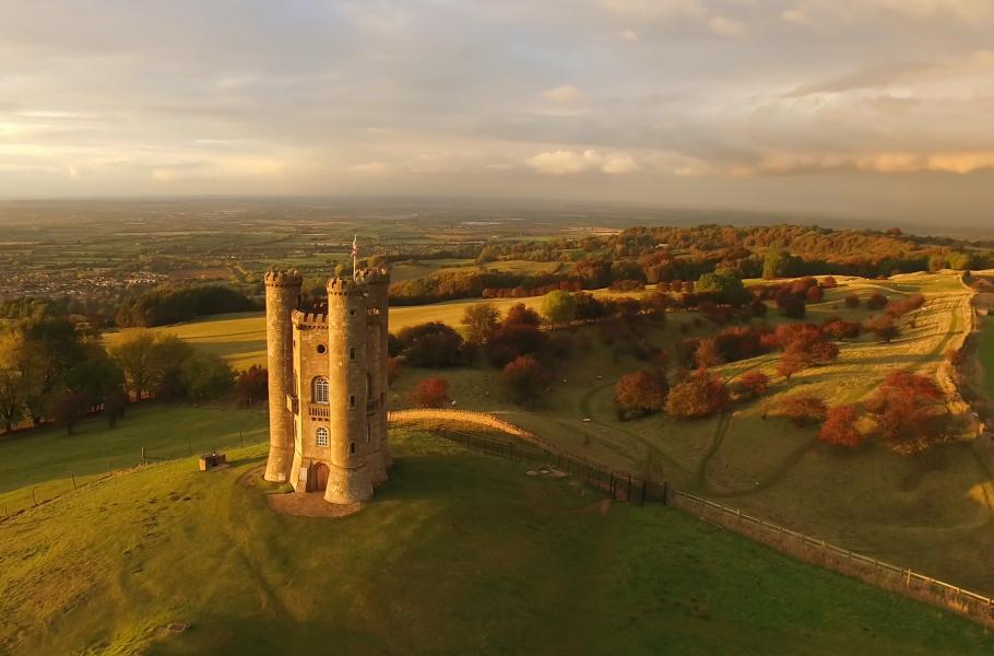 Mezi nejznámější památky hrabství Worcestershire patří i věž Broadway Tower: Tyčí se v nadmořské výšce 312 metrů a v roce 1794 ji navrhl James Wyatt na popud hraběnky Marie Coventryové. Aristokratka se v náhlém rozmaru rozhodla zjistit, zda by mohla světlo z Broadway Hill vidět v noci ze svého sídla ve Worcesteru, vzdáleného zhruba 35 kilometrů. Stavbu proto financovala a po jejím dokončení roku 1799 se na vlastní oči přesvědčila, že záře z věže k jejím oknům skutečně doputuje. Malý „hrad“ dnes funguje coby populární turistický cíl a muzeum. (foto: Shutterstock)