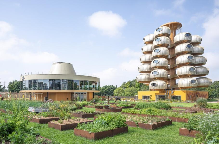 Unikátní hotel l’EssenCiel se inspiroval strukturou stromu a na jeho „větvích“ se nachází třicet šest pokojů. Návštěvníci se z jejich oválných oken mohou kochat krásami bretaňského venkova, přičemž součást areálu tvoří také špičková restaurace či krytý bazén. (foto: Profimedia/ČTK)