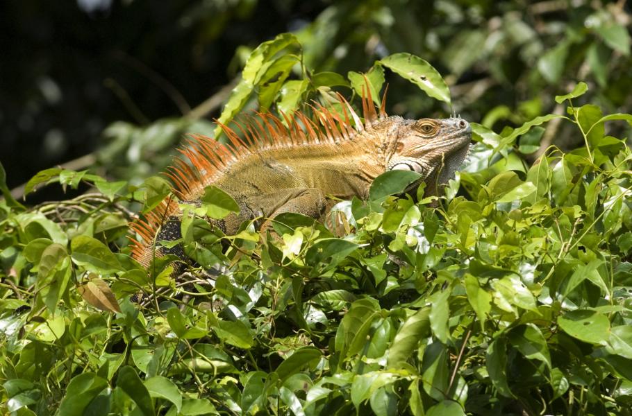 Právě tak před lety vypadalo mé první setkání s leguánem zeleným (Iguana iguana) ve volné přírodě. Leguáni byli bohužel v této oblasti velice plašší. Jsou zde sice chráněni, ale přesto je místní obyvatelé loví kvůli jejich údajně velice chutnému masu. Jak píše cestovatel Schomburgh citovaný v Brehmově životě zvířat: „Ač je vzhled tohoto zvířete velmi odpuzující, je jeho maso přece nejkřehčí, jaké si lze mysliti. Stejně chutná jsou i jeho vejce.“ Leguánům zeleným se proto také v některých zemích říká stromové kuře.