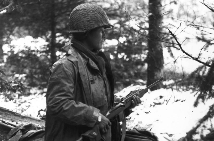 Jeden z příslušníků útvaru nisei – velitel čety 442. bojové skupiny někde ve Francii v roce 1944. (foto: Wikimedia Commons, U.S. Army, PDM 1.0)