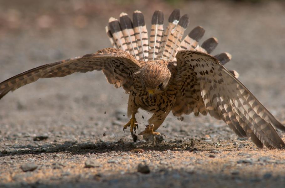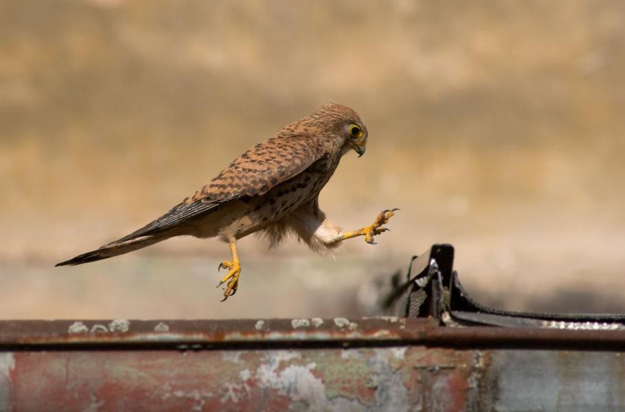 Netypický „překážkářský“ snímek poštolky. Městské prostředí zkrátka vyžaduje i jiný pohyb