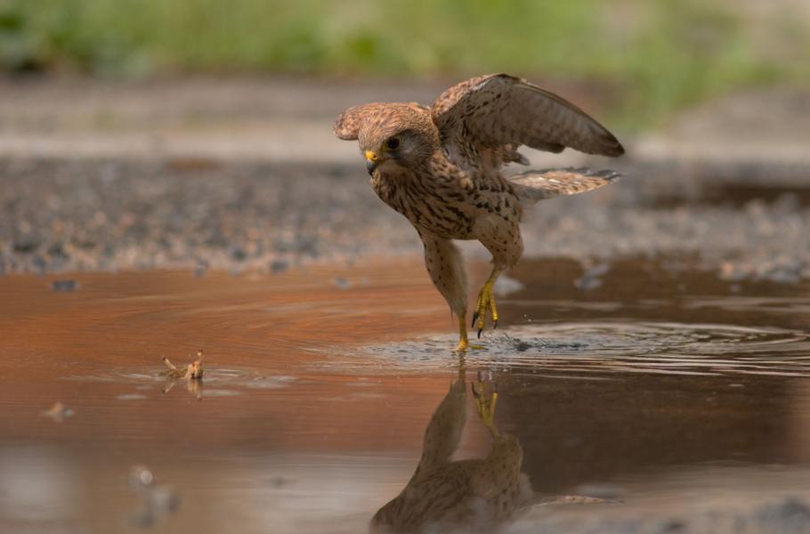 Dlouho jsem ovšem poštolku nemohl přesvědčit, aby se pro potravu pustila do mělké kaluže. Vždy nejdřív přistála na souši a až pak si váhavým kroky došla pro sousto. Nikdy jsem nepozoroval, že by se alespoň trošku napila. Zato se často popelila jako obyčejná slepice. Koneckonců ale nefotím orlovce a voda prostě není živel poštolek, říkal jsem si v duchu. Podobných zážitků jsem s těmito malými lovci prožil mnoho. Současně jsem si byl vědom blížícího se konce našeho dočasného přátelství.