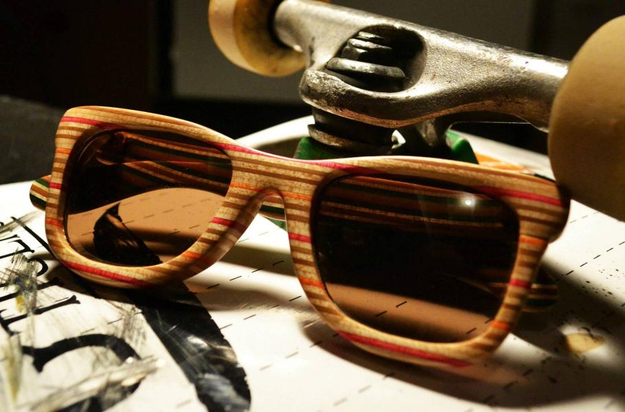 Společnosti Desk Tools a EQO Optics se proslavily recyklací odložených skateboardů: První vyrábí z použitých „prken“ židle a jiný nábytek, druhá dělá z lepeného dřeva obroučky brýlí.