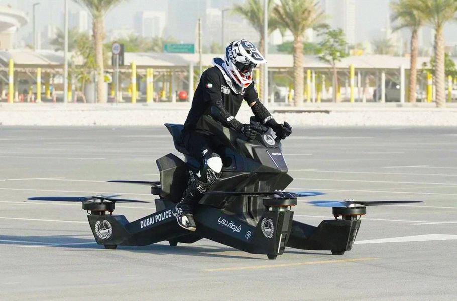 Dubaj neustále buduje svou pověst města budoucnosti a vedle policejních robotů či autonomní hromadné dopravy hodlá do roku 2020 nasadit do akce také zásahové jednotky na vznášedlových motorkách – tzv. hoverbicích. Dopravní prostředky připomínají kvadrokoptéru spojenou s motocyklem a pro arabskou metropoli je vyrábí kalifornský startup Hoversurf, s nímž město uzavřelo smlouvu v roce 2017.