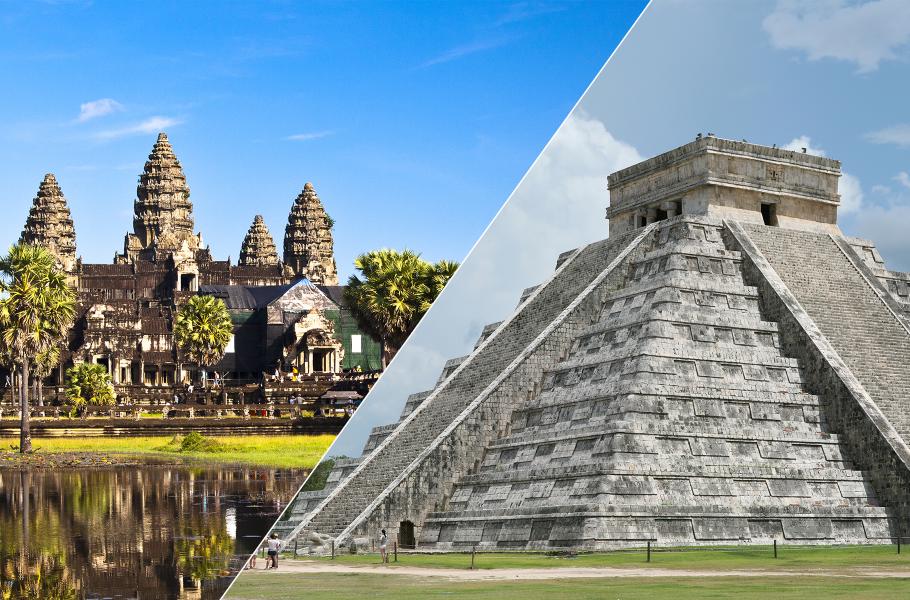 Města Angkor a Chichén Itzá, vybudovaná okolo posvátné pyramidy, vzkvétala zhruba ve stejném období a ve své vrcholné éře představovala centra moci. Které z nich však dosáhlo většího věhlasu?
