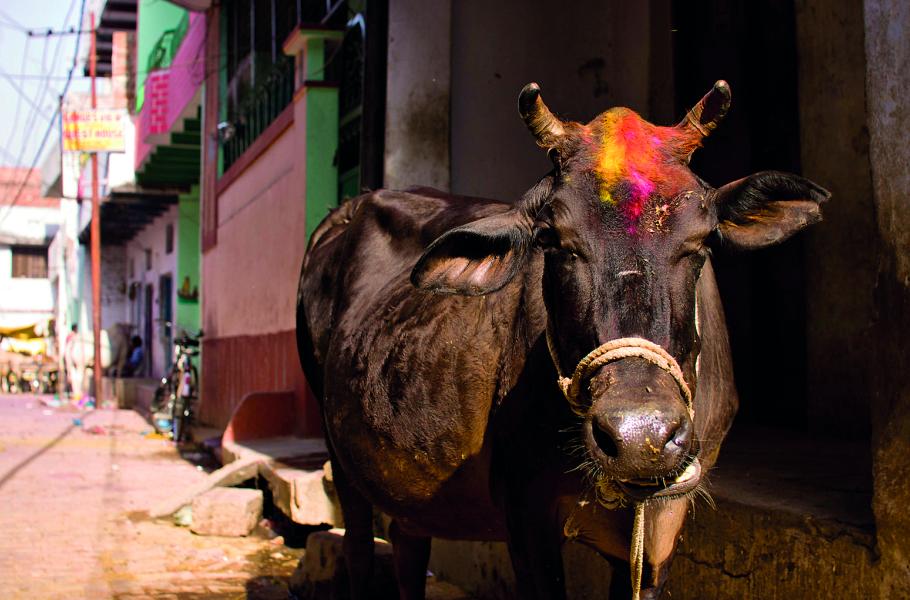 Kráva jako posvátné zvíře barevné „bitvě” samozřejmě nemůže uniknout. První zmínka o vrhání barev pochází se sedmého století.