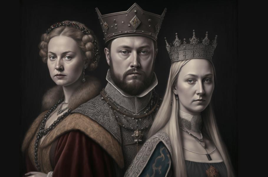 V rámci politických zájmů vyměnil Přemysl Adlétu za mladší a urozenější Konstancii. (ilustrace Midjourney AI, CC0)