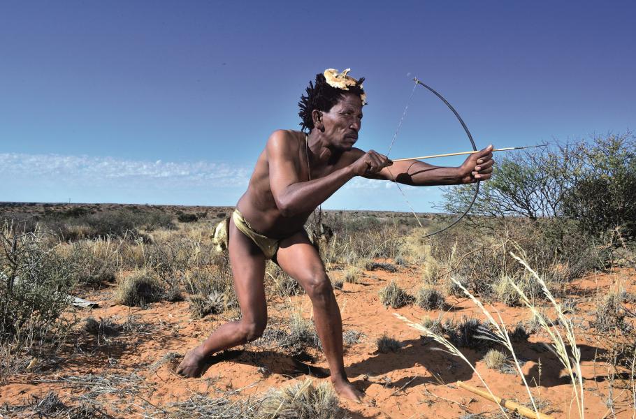 Africká etnika, jako třeba Sanové, úspěšně praktikují vytrvalostní lov ve vyprahlých savanách dodnes. (foto: Wikimedia Commons, South African Tourism, CC BY 2.0)