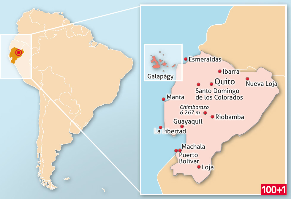 Nejnižší a nejvyšší bod: Tichý Oceán 0 m/Chimborazo 6 267 m
