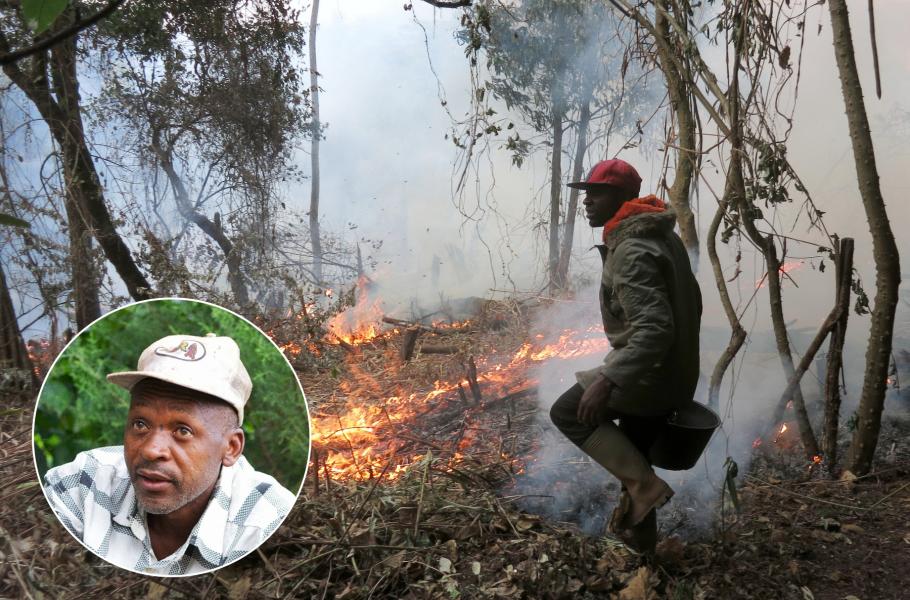 Vypalování lesa je nebezpečná činnost, při které mohou být zasažena i místa, na něž se farmáři zatím nechtěli zaměřit. Ve výřezu Ernest Vunan.