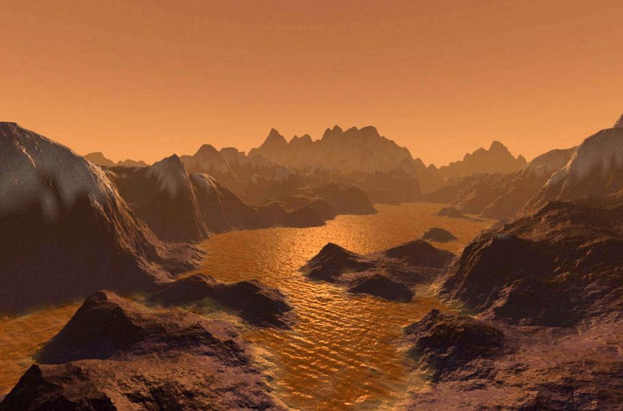 Na detailních snímcích Saturnova měsíce Titan lze dobře rozeznat světlé oblasti protkané tmavými klikatými čarami jako rozvětvenými „odvodňovacími“ kanály, jež směřují k pobřežní linii. Jedná se o pevný povrch pokrytý ledem, po němž tečou proudy kapalného metanu, které končí v tmavé oblasti představující jezero či moře. „Vidíme zde říční systém, vytvářející typickou deltu při ústí do moře. Vznikají tak pobřežní ostrůvky a mělčiny podobně jako na Zemi,“ vysvětluje Martin Tomasko z Arizonské univerzity.
