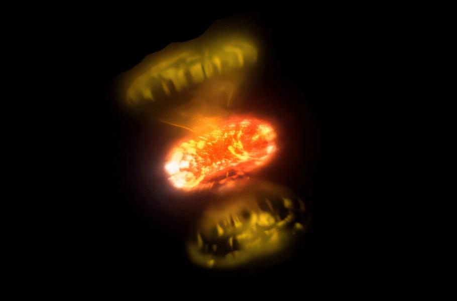 Vizualizace novy V1674 Herculis. (ilustrace: Georgia State University, CHARA Array, CC BY-SA 4.0)