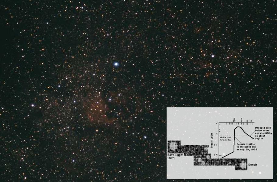 29. srpna 1975 se v souhvězdí Labutě rozzářila jasná nova, známá jako Nova Cygni 1975, a křížový obrazec Labutě na nočním nebi tak na několik týdnů doplnila další výrazná hvězda. Poté nova opět zeslábla pod hranici viditelnosti pouhýma očima.