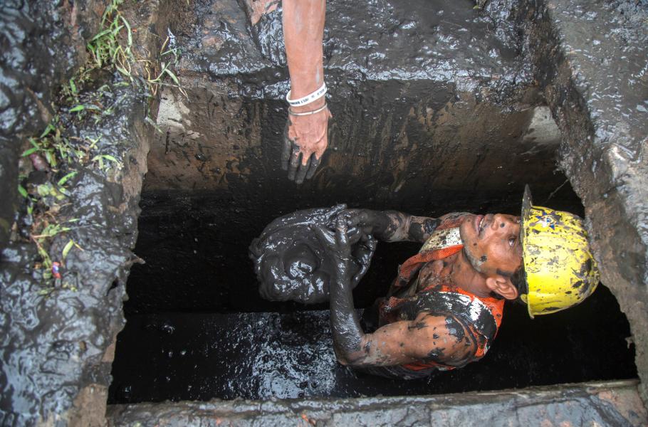 Kanalizace bangladéšské Dháky nezvládá obrovský nápor splašků od tamních čtrnácti milionů obyvatel, potrubí se tudíž často ucpává a hrozí vyplavením. Do akce proto nastupují tzv. methorové neboli „uklízeči výkalů“: Polonazí a bez jakékoliv ochrany se noří do fekálií a snaží se blokádu uvolnit. Mnozí se při tom utopí či otráví hnilobnými plyny, jiné „pouze“ trápí různá kožní onemocnění, anémie či žloutenka. Za popsanou oběť dostávají v přepočtu dvě stě korun denně, tedy minimální mzdu. (foto: Profimedia)