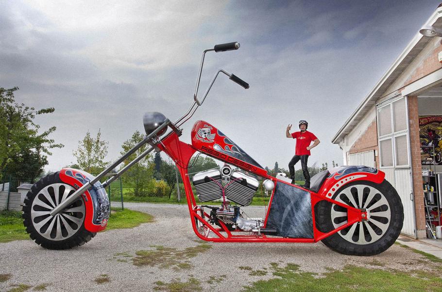 Většina motorkářů bojuje na silnicích s tím, že je „vytlačují“ větší vozidla. Podobný problém se však rozhodně netýká Fabia Reggianiho – majitele největšího motocyklu světa. Jeho „hračka“ měří na výšku bezmála 5 m, váží 5,5 t a pohání ji osmiválcový motor o objemu 5,7 l a výkonu 186 kW (asi 280 koní). Oproti běžným strojům je tedy asi šestkrát rozměrnější.