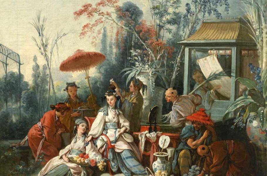 Fascinace orientální exotikou se promítla i do malířství. Plátno Čínská zahrada vytvořil v 18. století François Boucher