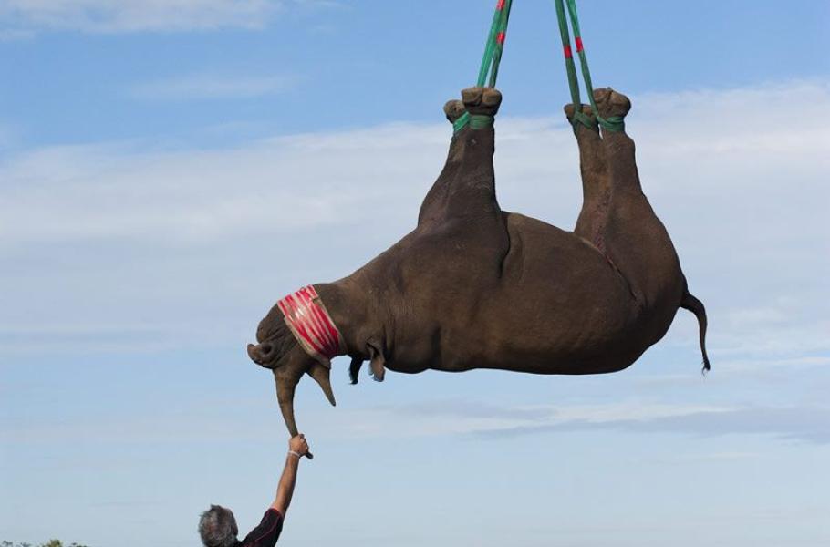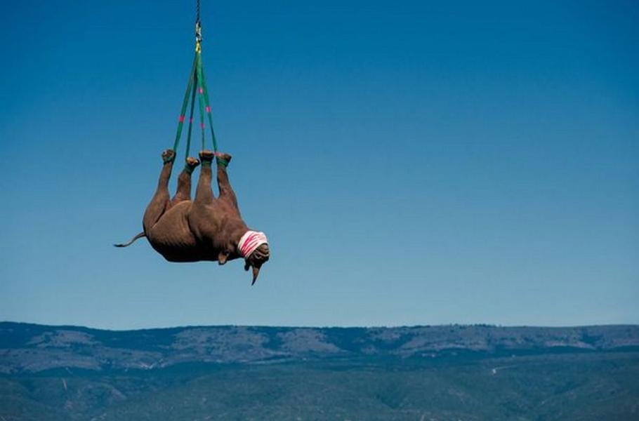 Komplex Great Fish River Reserve, sestávající se z tří samostatných přírodních rezervací, byl založen v roce 1994 a rozkládá se na ploše přes 45 tisíc hektarů. V minulých dnech se v tomto parku odehrál spektakulární transport nosorožce černého do bezpečnější, blíže nespecifikované části parku. Téměř tunu vážícího nosorožce, zavěšeného hlavou dolů přepravoval nákladní vrtulník. Fascinující podívanou zdokumentoval Pete Oxford, fotograf specializující se na divoká africká zvířata.