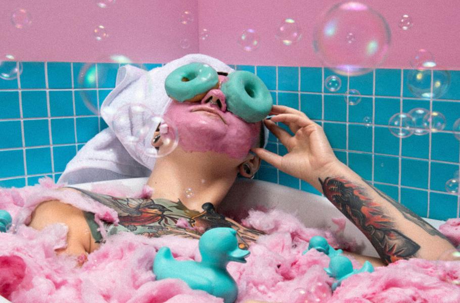 Sladké snění pojal Marcin Jucha doslovně: Ve studiu si postavil koupelnu, vanu naplnil cukrovou vatou, namísto bahenní masky nanesl modelce na tvář růžovou čokoládu a oči jí zakryl koblihami. Ideální relaxace… (foto: FPotY)