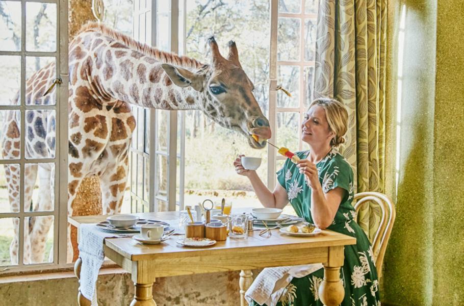 Pokud máte štěstí a bydlíte v hotelu Giraffe Manor nedaleko keňské metropole Nairobi, můžete stolovat spolu s žirafami. Zvířata jsou na lidskou přítomnost zvyklá, své dlouhé krky prostrkují dovnitř okny a nezdráhají se ani ochutnat z talířů na stolech. (foto: FPotY)