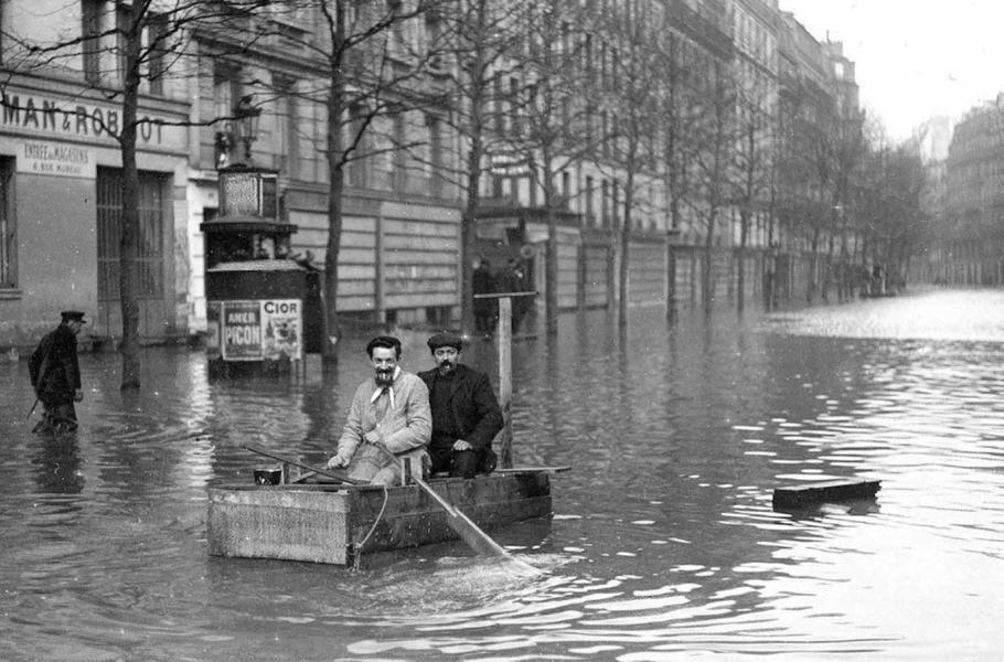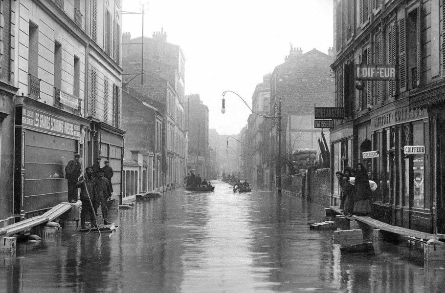 Té zimy hodně pršelo a hladina Seiny střídavě stoupala a klesala. Když už si v lednu roku 1910 Pařížané oddechli, přišla náhle pohroma – voda vystoupala osm metrů nad obvyklou výšku…
