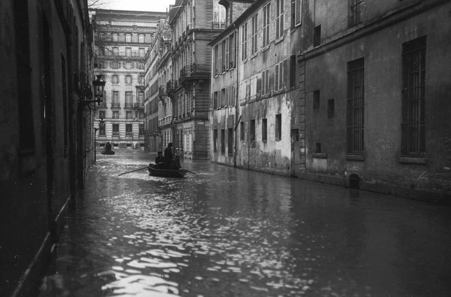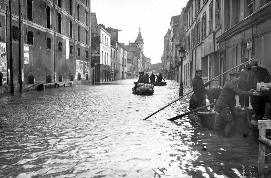 Právě 21. ledna 1910 hladina Seiny dramaticky stoupla a to, co se zpočátku Pařížanům jevilo jako zajímavá podívaná, přerostlo v paniku. Voda ovládla ulice. Lidé ze zaplavených oblastí museli být evakuováni – nikdo netušil, zda promočené zdi jejich příbytků vůbec vydrží. Policie, hasiči i vojáci křižovali ulicemi na lodičkách a zachraňovali smolaře, které voda uvěznila v horních patrech.