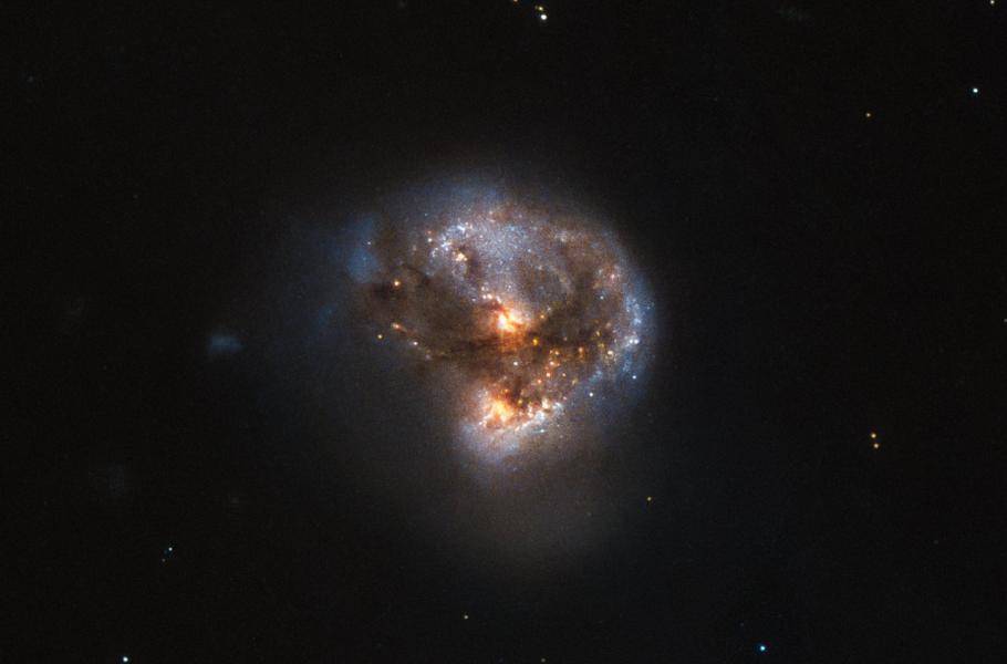Galaxie na novém detailním snímku Hubbleova vesmírného dalekohledu se jmenuje IRAS 16399-0937 a je od nás vzdálená 370 milionů světelných let. Na první pohled připomíná krásné kosmické poupě, ale ve skutečnosti se uvnitř galaxie odehrávají vesmírná dramata.