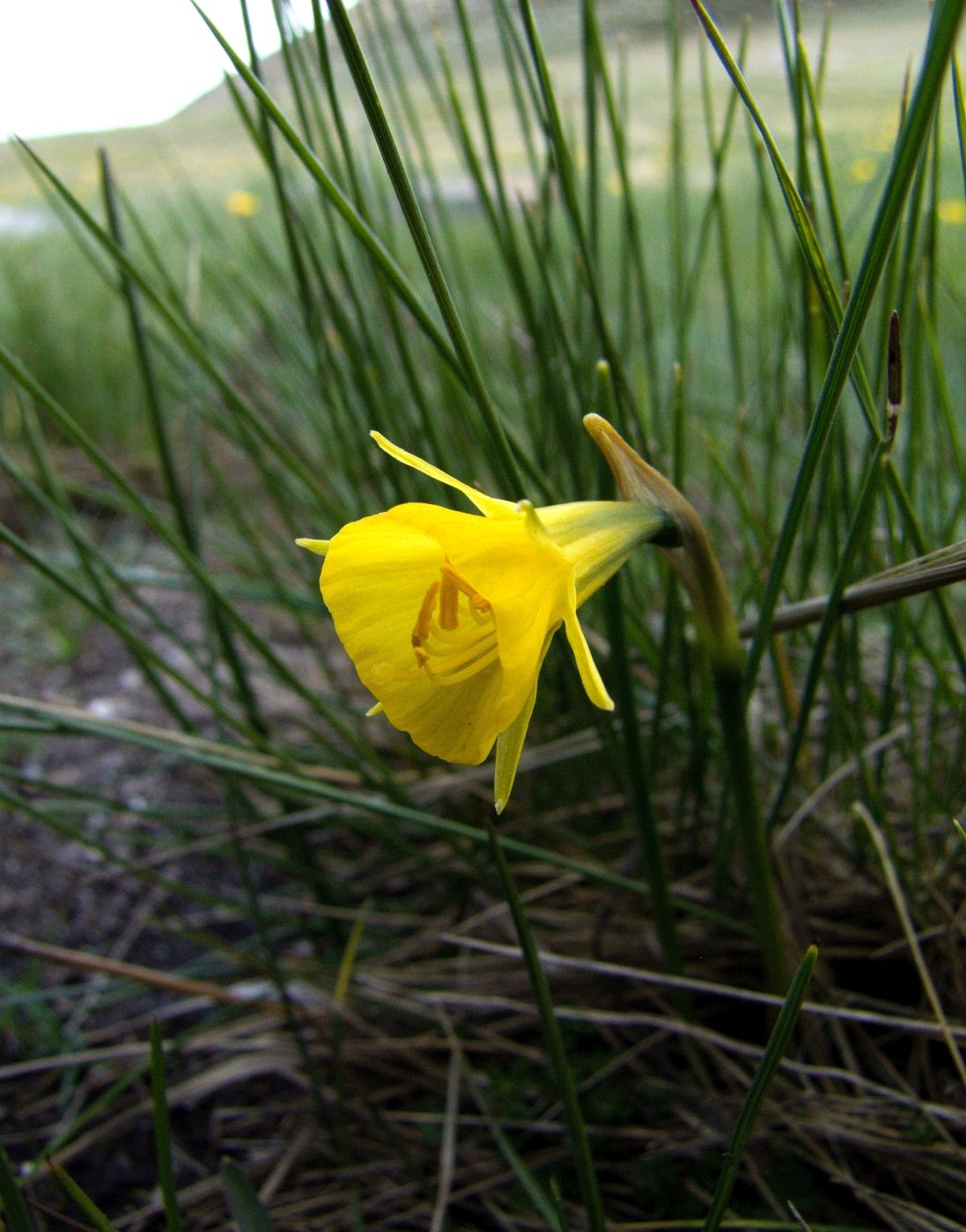 Narcis sukničkový (Narcissus bulbocodium) je poněkud atypický narcis, který má výraznou květní pakorunku s menšími okvětními lístky