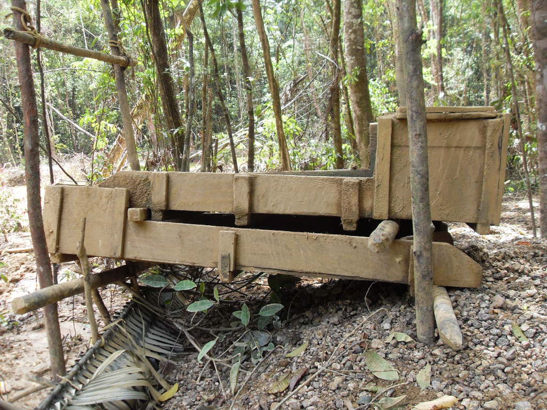 • Separační síto jako na Klondiku. Zlatonosné bahno se žene přes rošty, kde se zachytává v rohožích, které se zhruba po týdnu vyklepou, amalganizují se rtutí a pak odpaří.