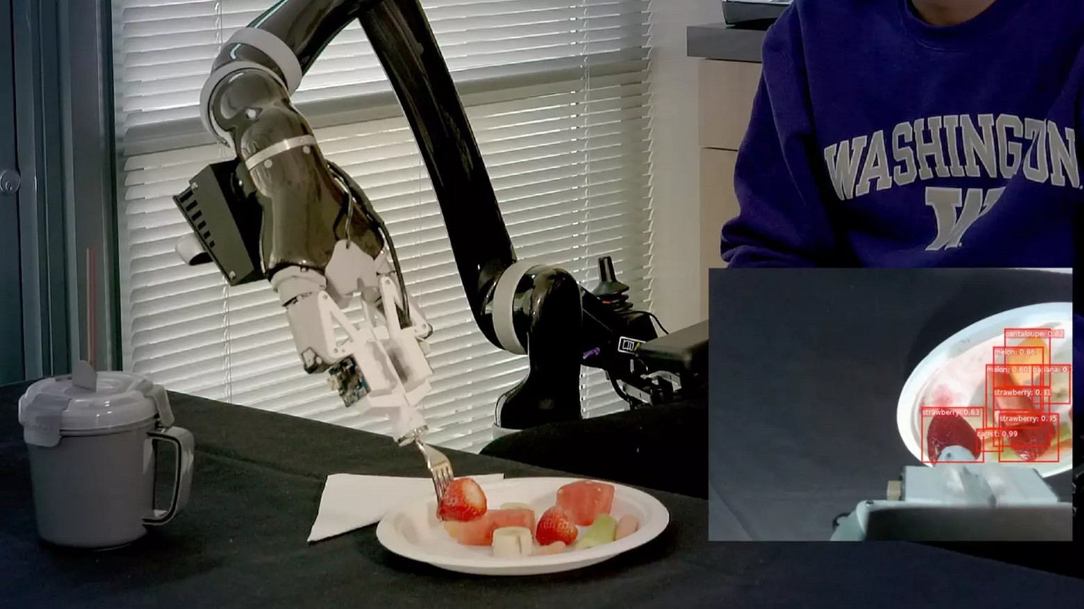 Autonomní robotická paže dokáže používat vidličku: Pomáhat má lidem s hendikepem